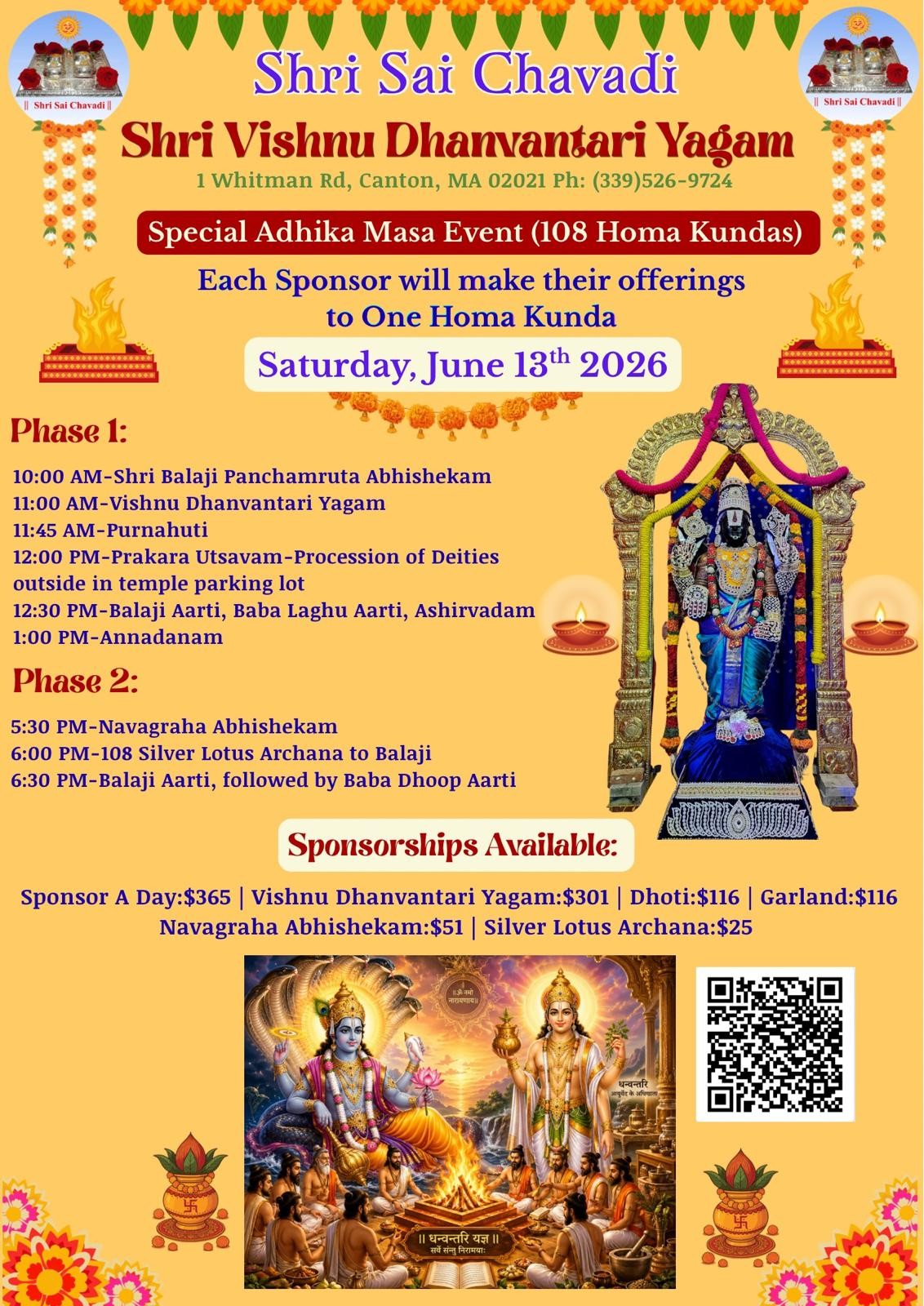 Shri Vishnu Dhanvantari Yagam - June 13th 2026
